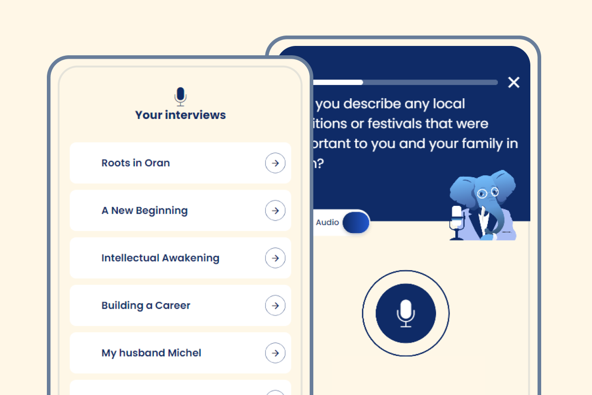 Your memories deserve to be passed on and preserved. With its simple and accessible method, Elefantia transforms your stories into unique tales .