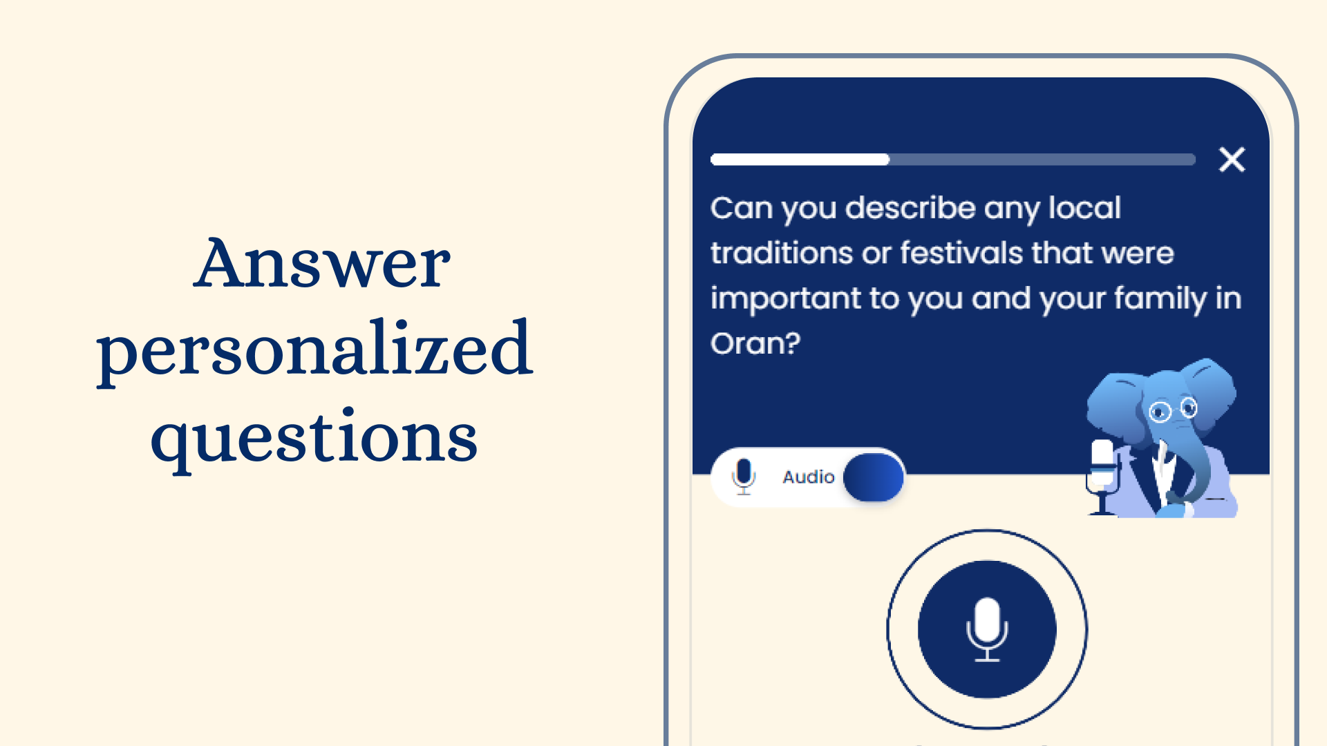 During this phase, you answer specific questions that are posed to you. These questions are carefully crafted to explore different periods and facets of your life. You can choose to respond in writing or via audio recording, whichever you prefer. The flexibility to multiply the recordings according to your memory ensures that no detail is missed. This personalized approach allows you to capture the essence of your life story in a natural and complete way.